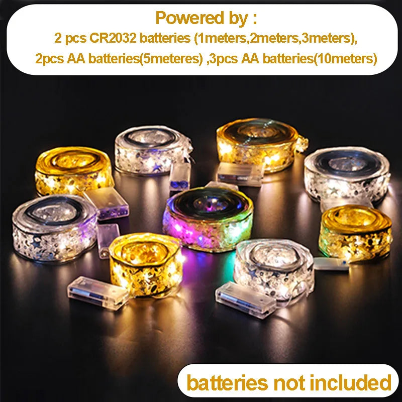 1-10M Christmas luminous lights decoration golden Ribbon Fairy String Lights for Home Party Christmas tree supplies decor