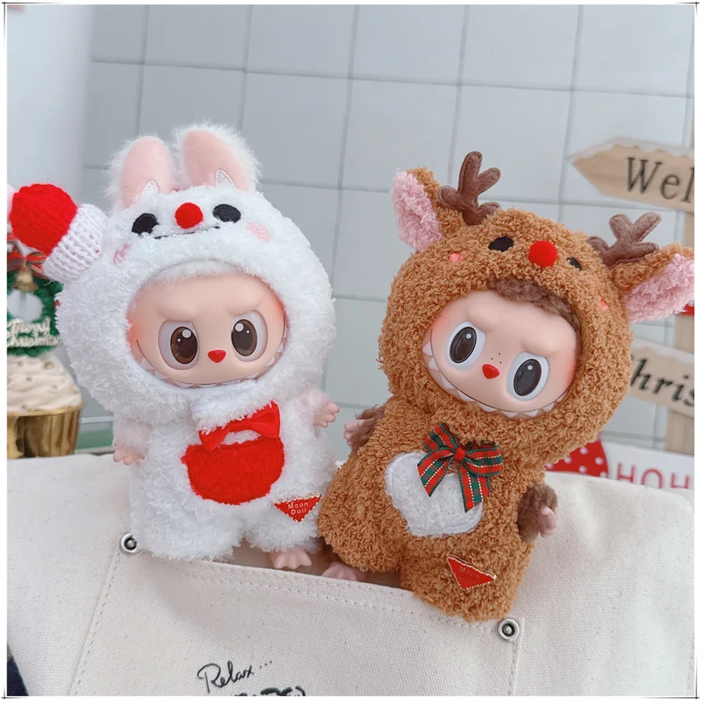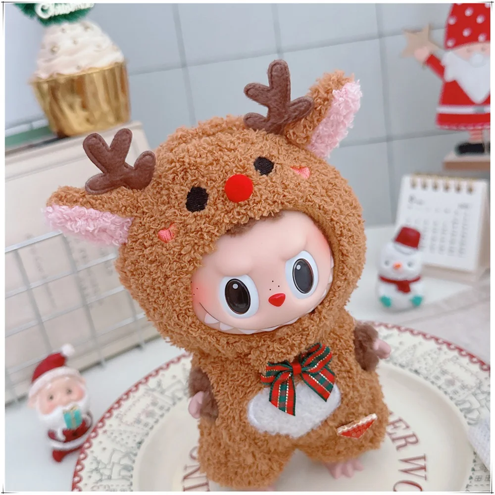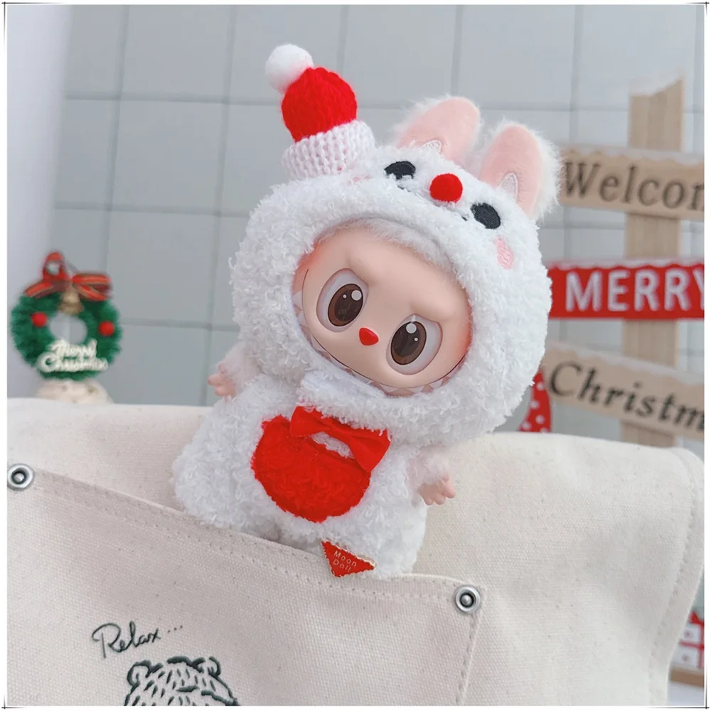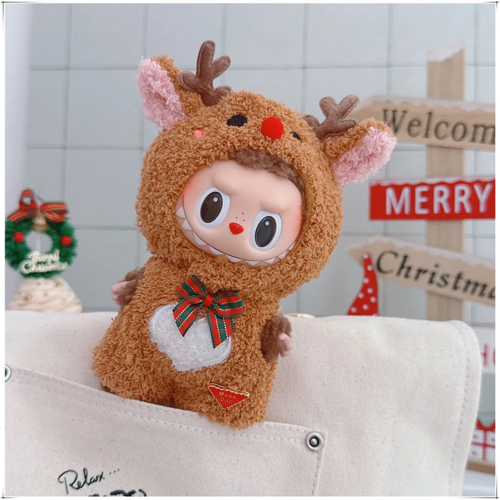 15cm Cotton Doll Christmas Outfit Set Headcover Onesuit Cute Reindeer Snowman Costume for 17cm Labubu Clothes Dress Up Toy