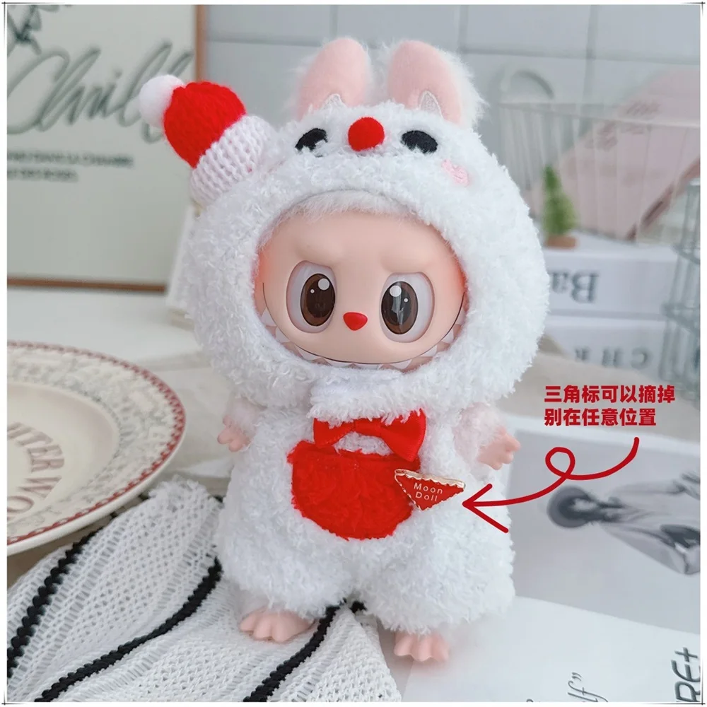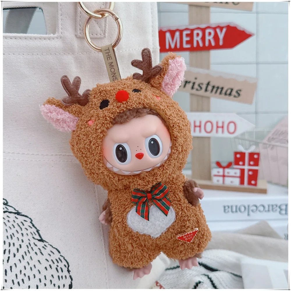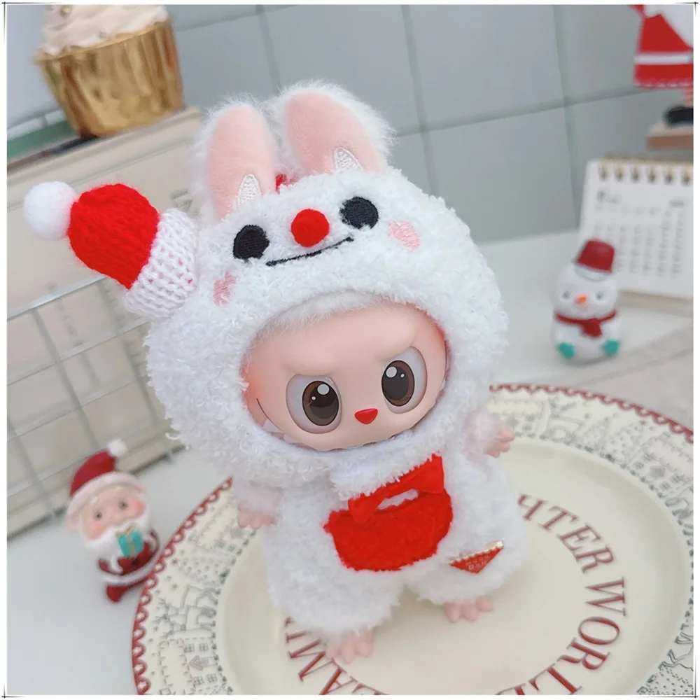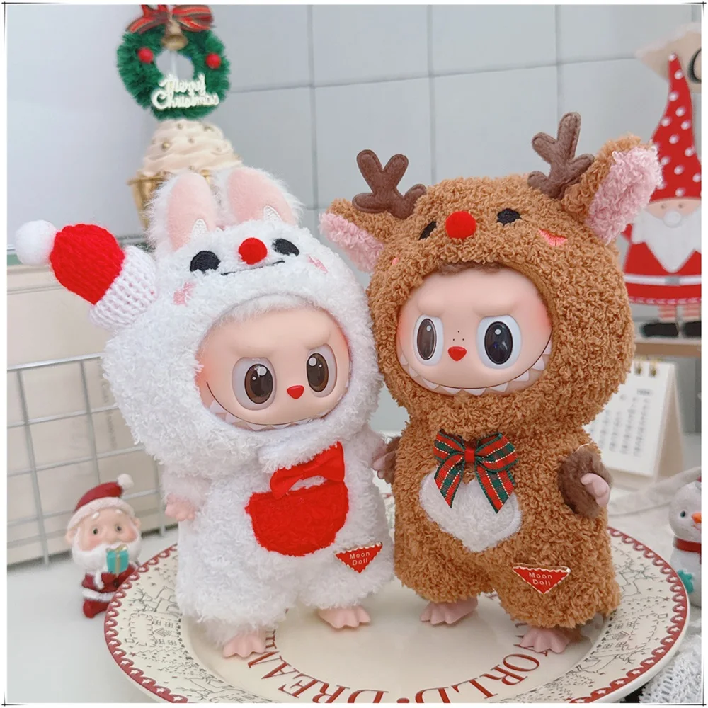 15cm Cotton Doll Christmas Outfit Set Headcover Onesuit Cute Reindeer Snowman Costume for 17cm Labubu Clothes Dress Up Toy