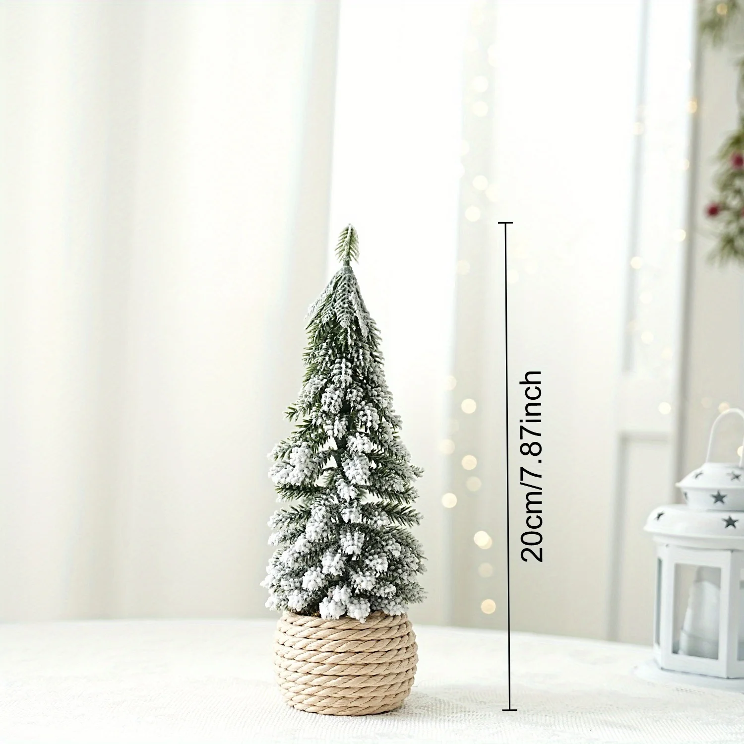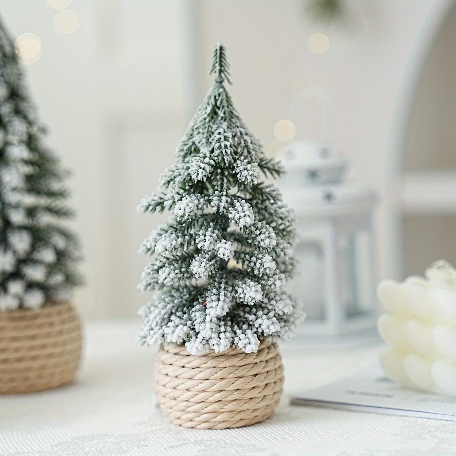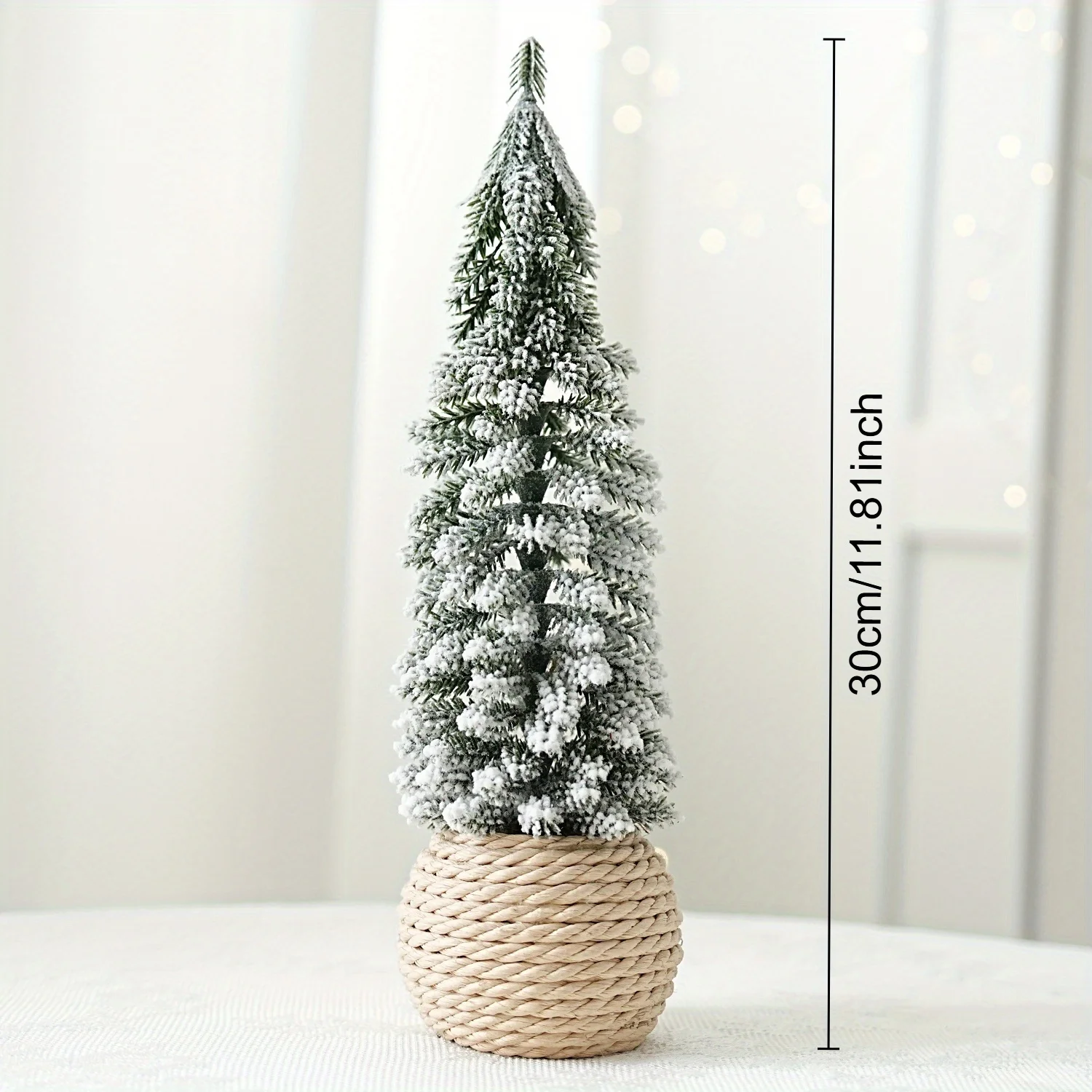 1pc artificial mini Christmas tree, hemp rope bottom basin Christmas tree, winter craft decoration,for home desktop decoration