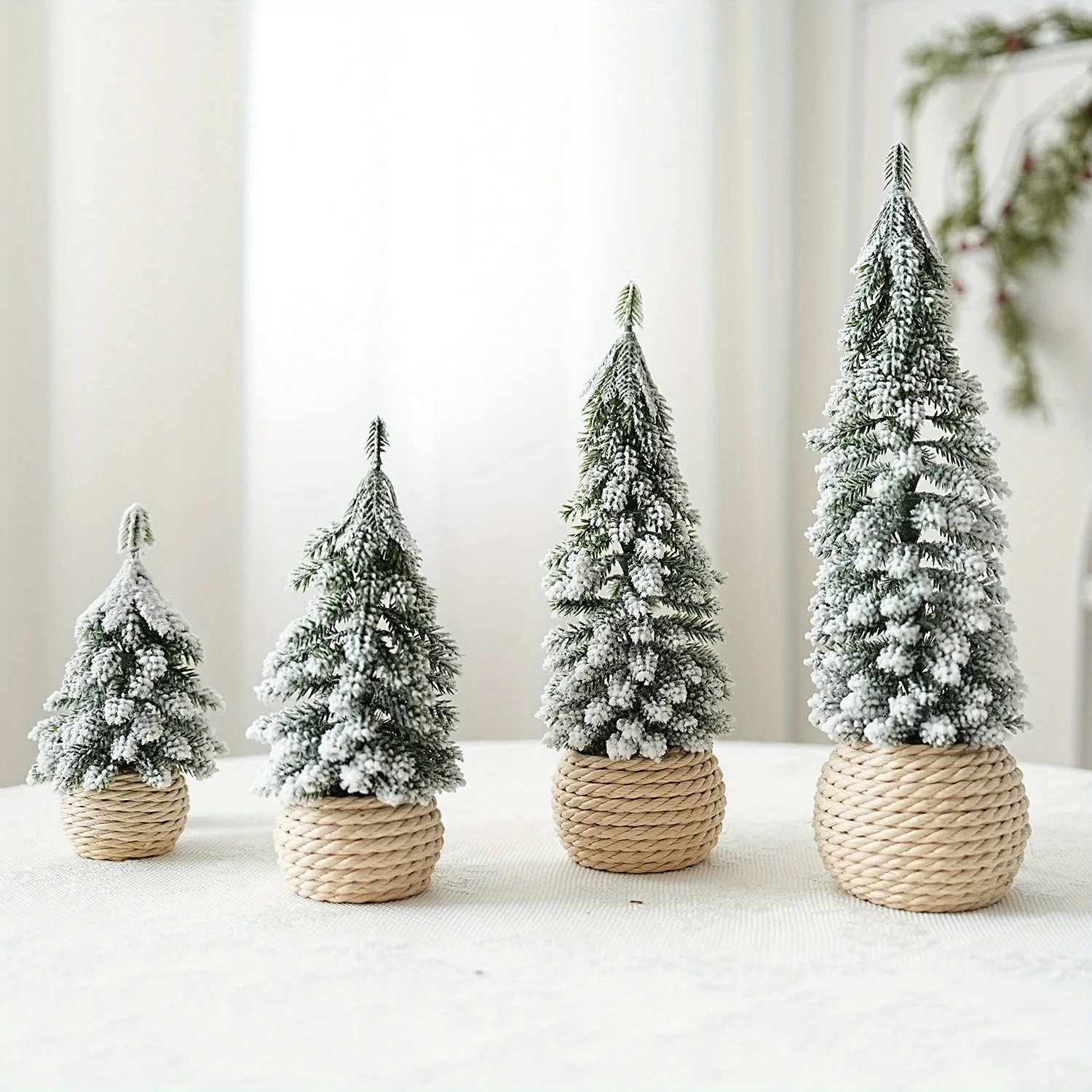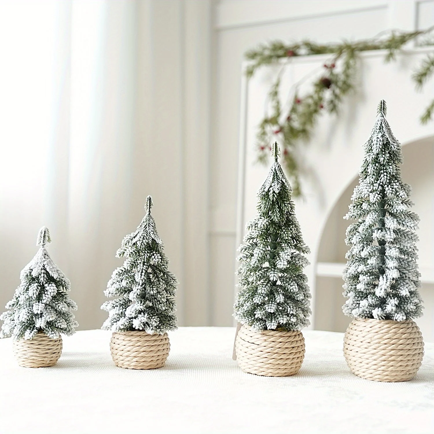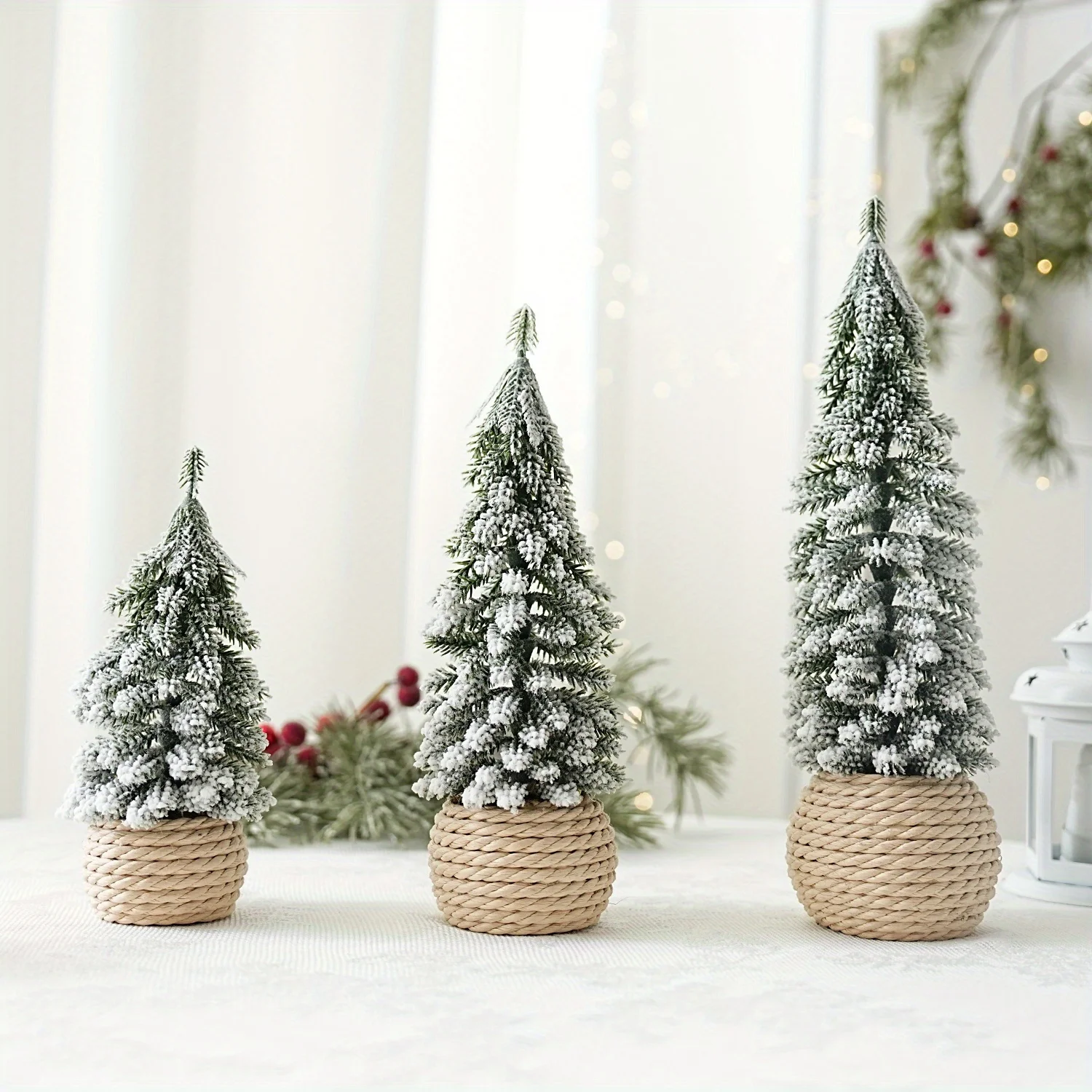 1pc artificial mini Christmas tree, hemp rope bottom basin Christmas tree, winter craft decoration,for home desktop decoration