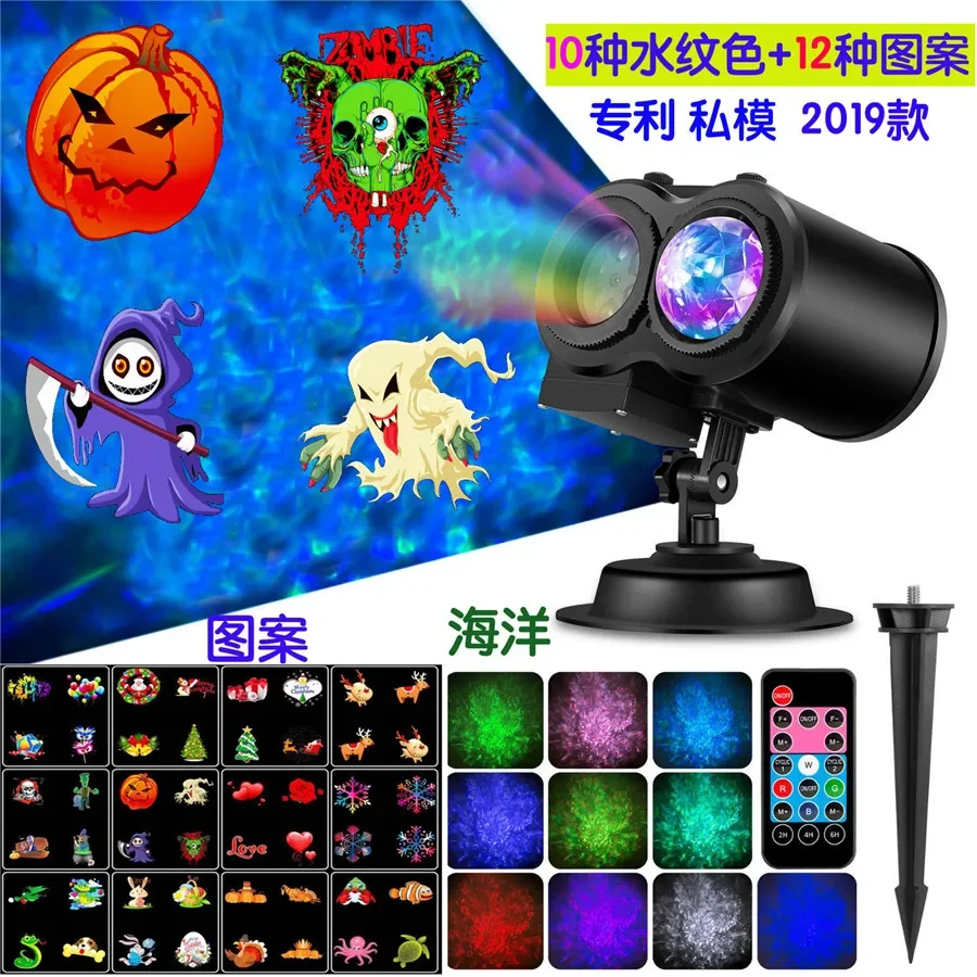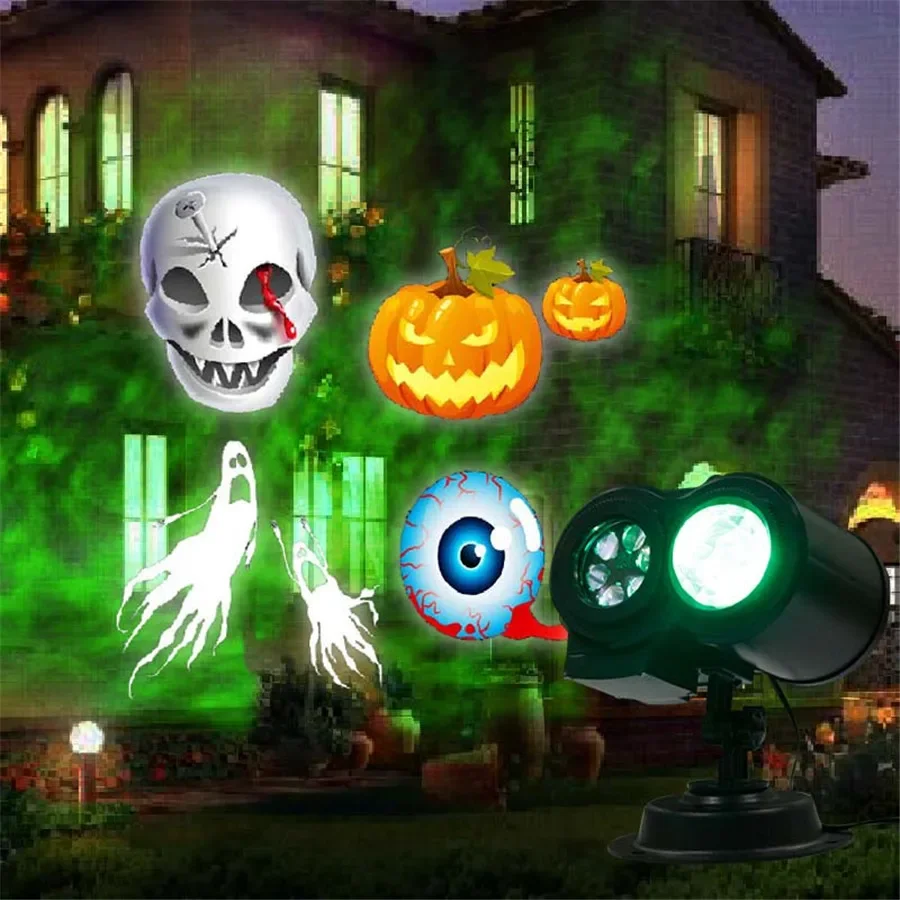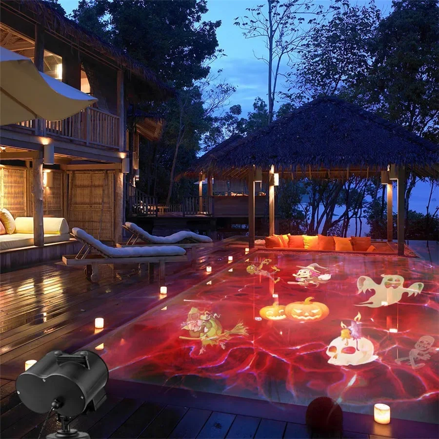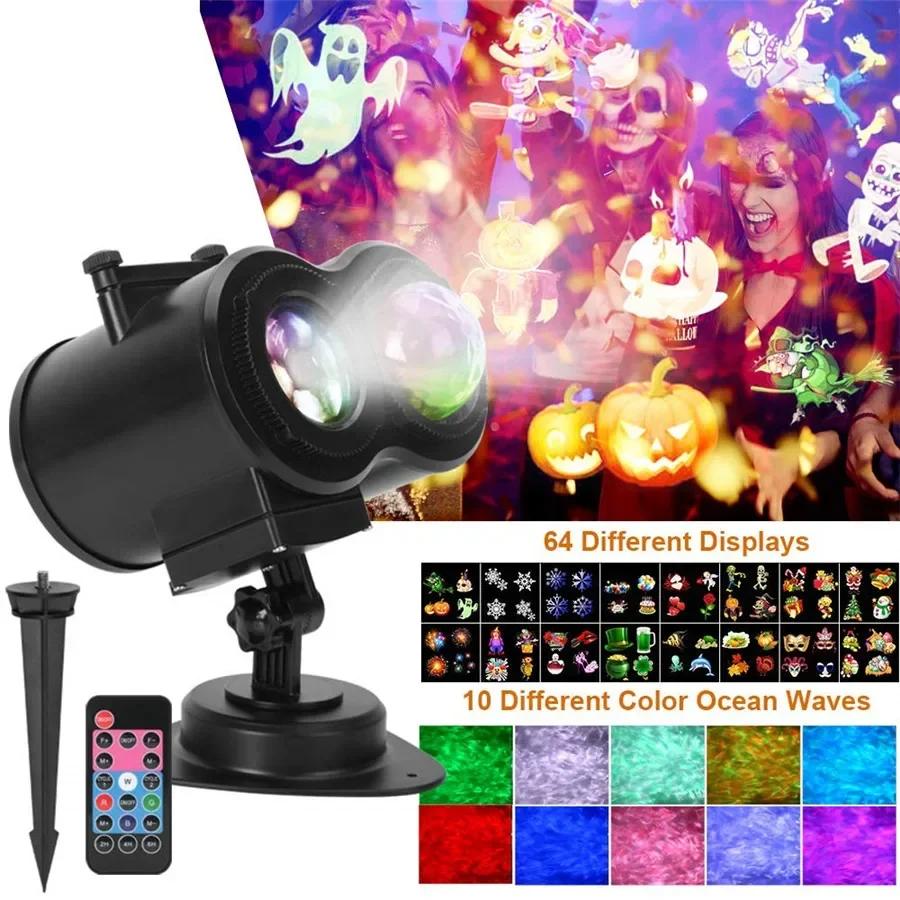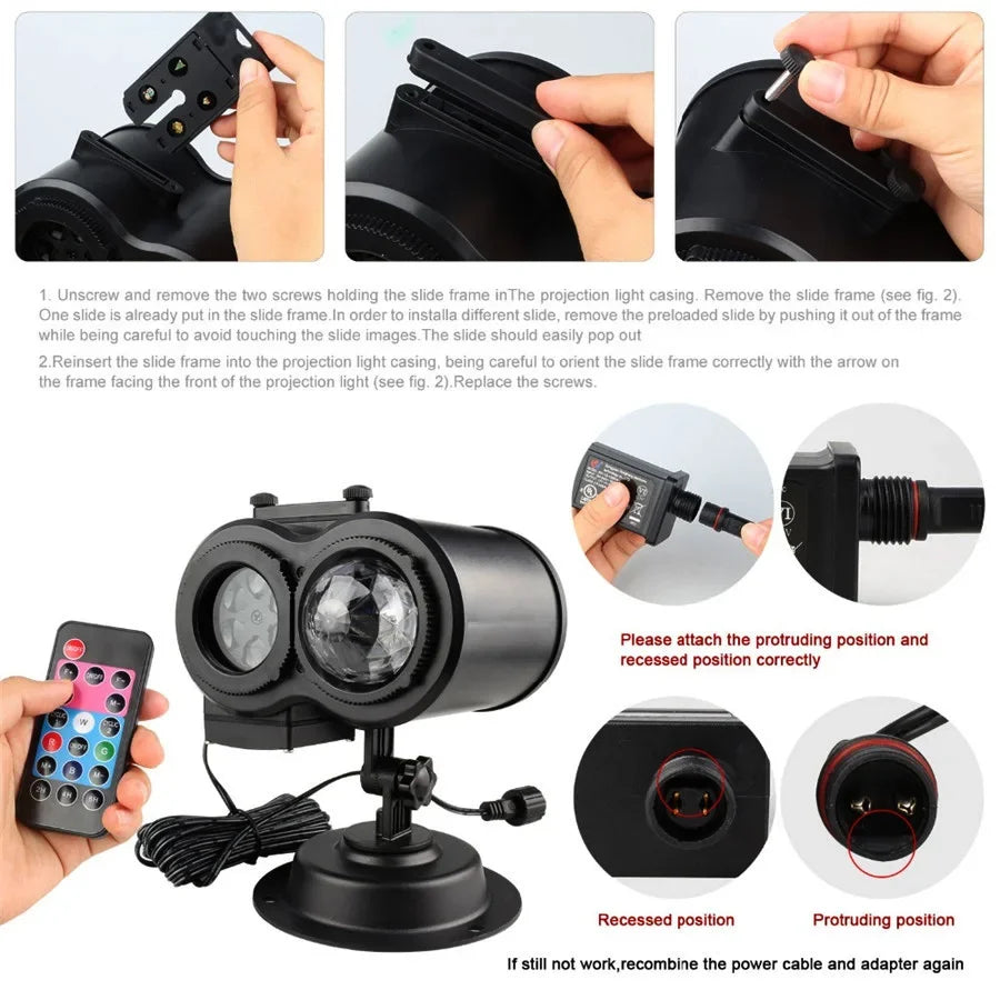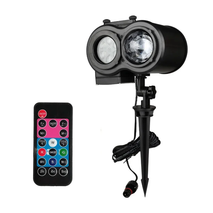 2 IN 1 Outdoor Christmas Projector Lights 16 Patterns Snowflakes Landscape Projector Lamp with Remote for Halloween Party Decor