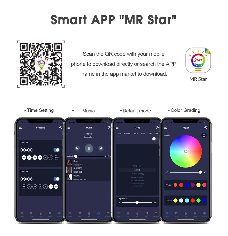 【APP Control 】Controlling the LED strip lights via APP, remote control and controller. With the APP, you can freely choose to control 16 million colors. The bluetooth strip light has a smart music mode, which creating romance, relaxation, party ambiance with Music, lights color will change with the music beats or your microphone.