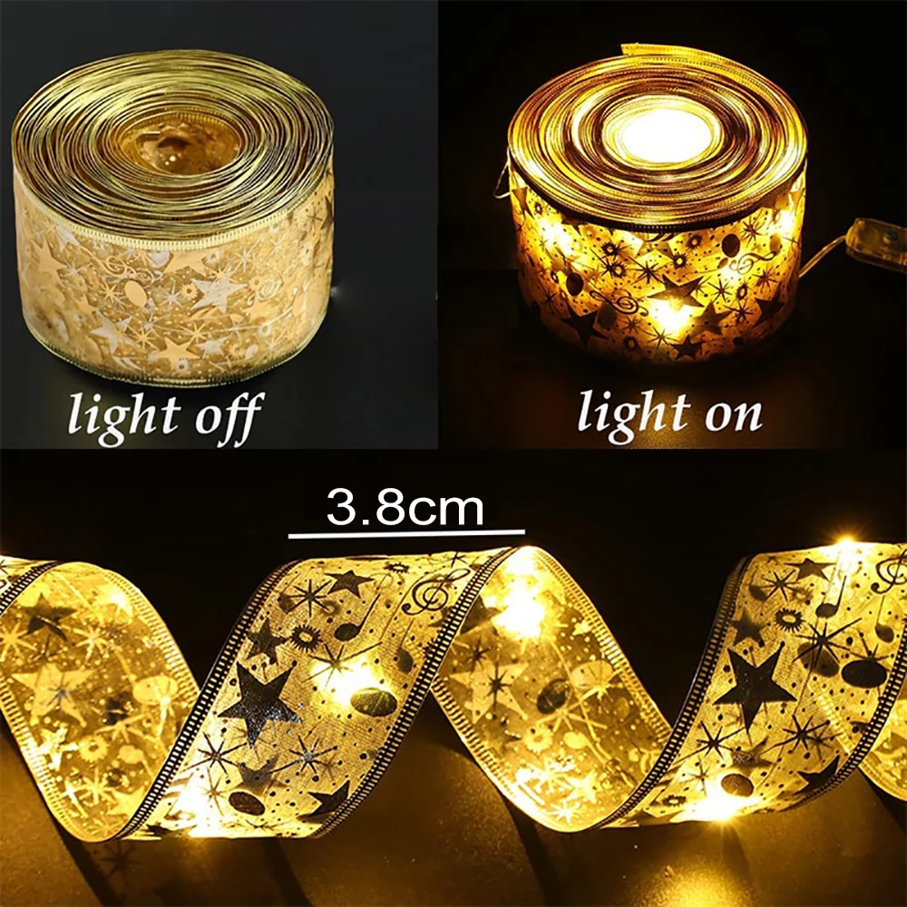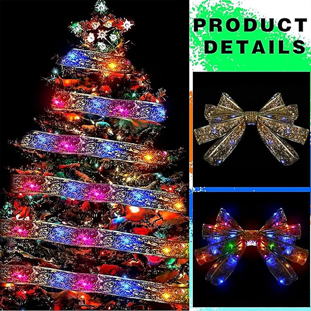 🎄【Easy to Use】The christmas ribbon for tree is powered by 3 AA batteries (not included), can be used to decorate any occassions you want, such as Christmas children's rooms, porch, garden and Christmas tree.