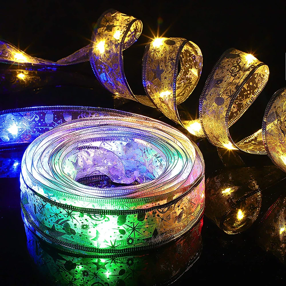 Christmas Ribbon Fairy Light 1/5/10M LED Christmas Tree Decoration DIY Bows String Lights Home Decor Ornament Accessories