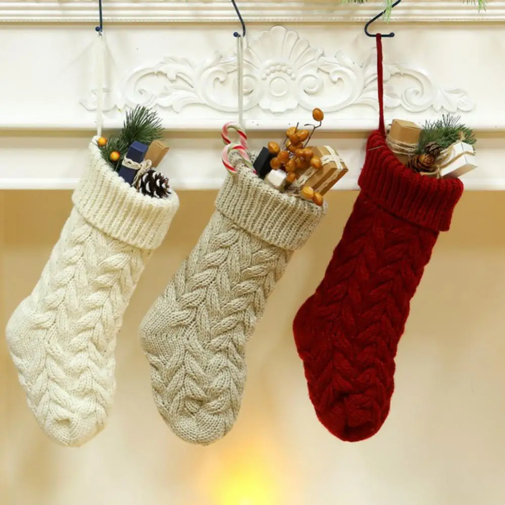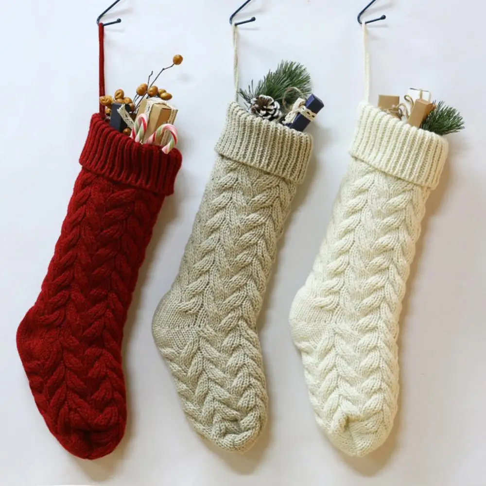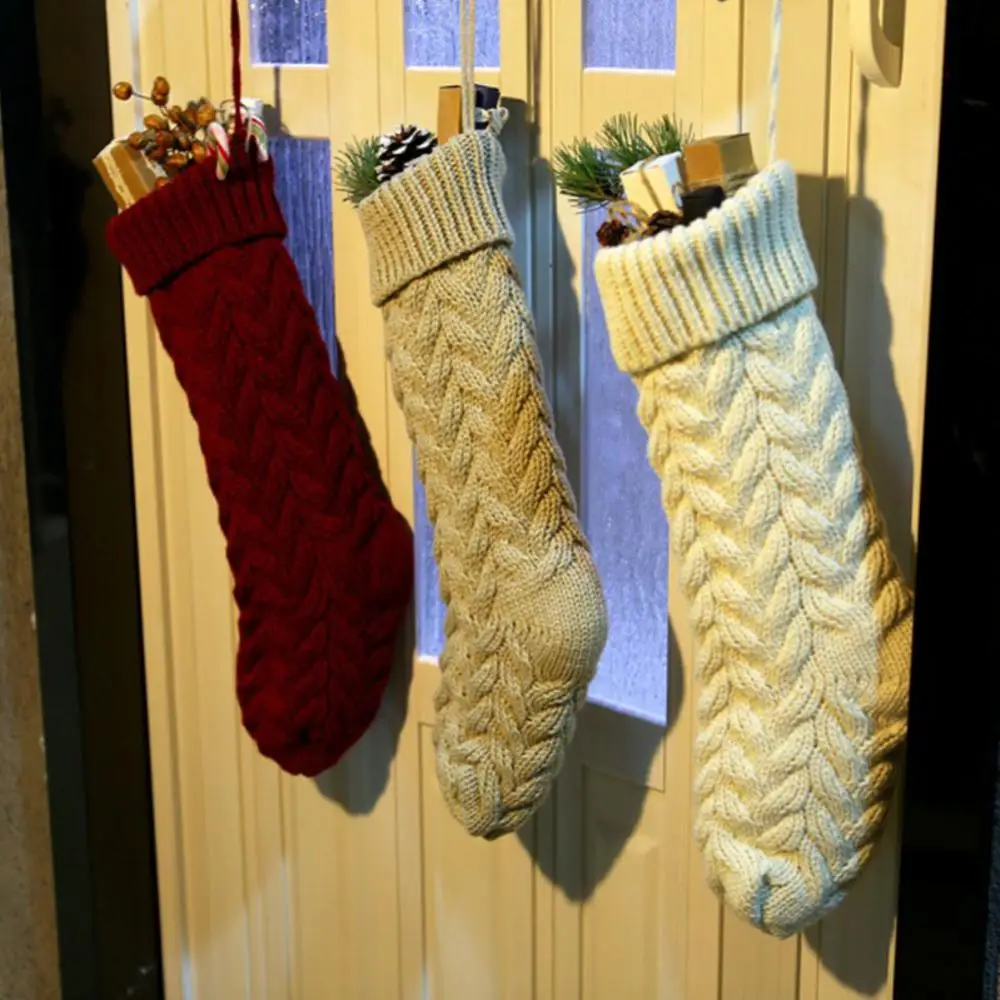 Christmas Stockings For Kids Large Size Cable Knit Stocking Christmas Decorations For Family Party
